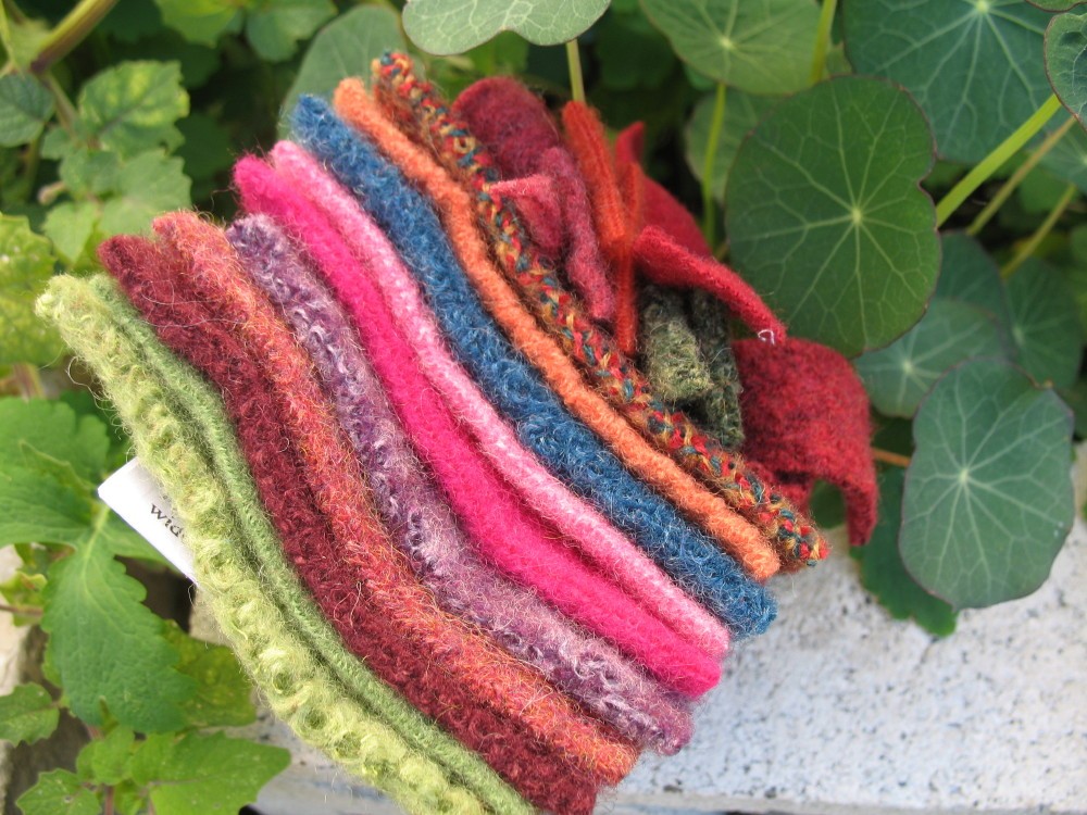 La lana puede ser hilada o puede trabajarse como fieltro, como ya he comentado muchas veces y yo me decanto por el fieltro. Mucha ropa de lana tejida, que se ha quedado vieja o desgastada, puede servirnos para hacernos prendas nuevas con un poco de ingenio y convirtiéndolas en fieltro gracias al papel del agua caliente, el jabón y el movimiento.