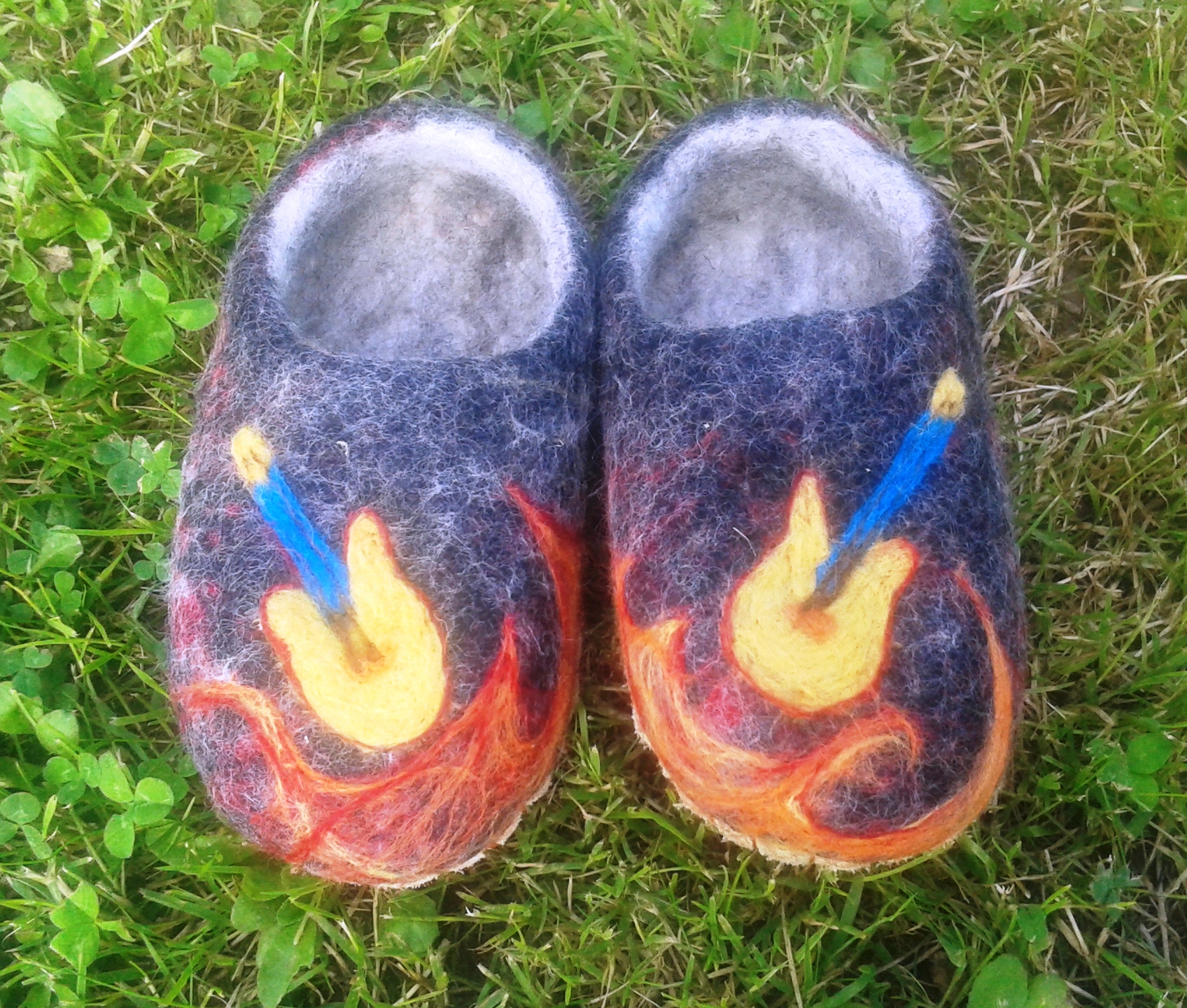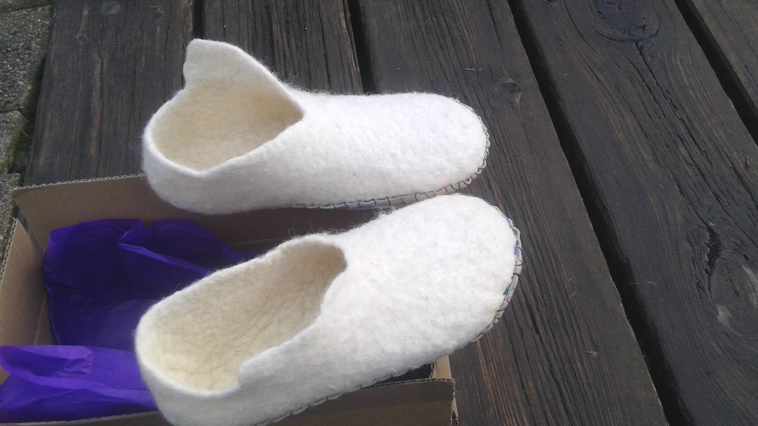 Resulta que la lana con sus pelillos, es más suave que esos recuerdos de infancia de odiados jerséis de lana que picaban por todas partes. Pero sí sigue habiendo pelillos, aunque No, no pican, no son desagradables sino más bien todo lo contrario… La lana afieltrada, es suave, pero no como la seda, eso no resultaría cómodo, ya que los pies fueron hechos para andar descalzos y las micro rugosidades ayudan mucho. Además, los pies necesitan moverse con libertad y respirar, y eso se da sin más en cualquier zapatilla hecha con lana afieltrada, pues carece de costuras y se adapta al pie, a su forma única. El cuero no puede alcanzar tanta precisión, no digamos ya otros materiales.